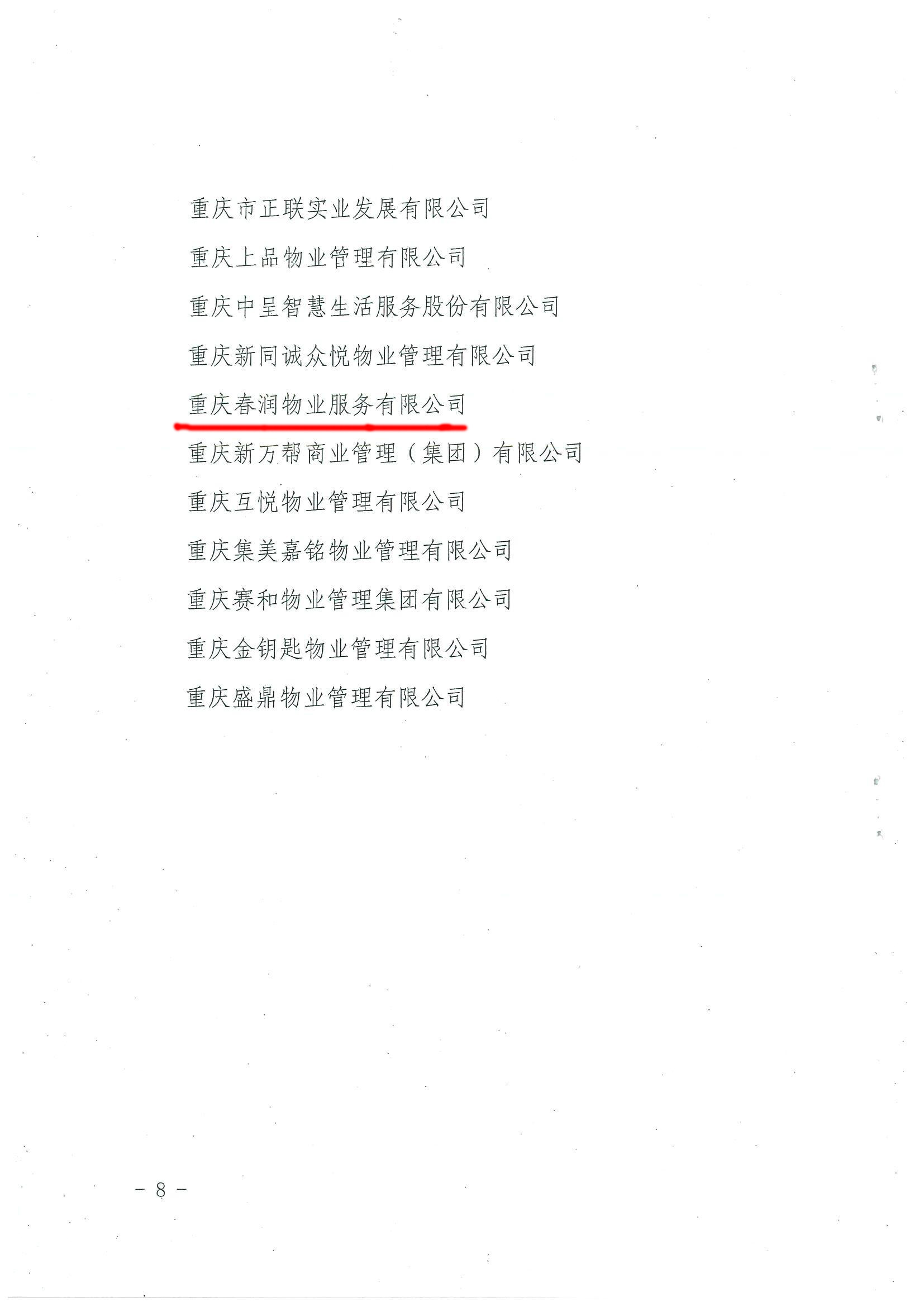 关于2021年度川渝品牌物业服务企业认定名单的公示